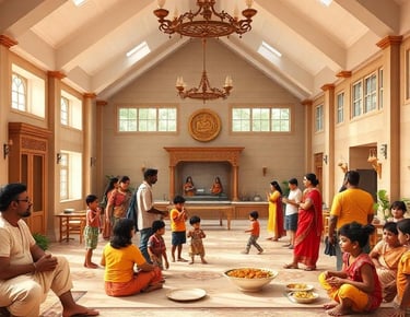 Volunteer opportunities allow members to serve through cooking prasad, maintaining the temple, and supporting those in need. Shared meals after Sunday services foster friendship across generations.